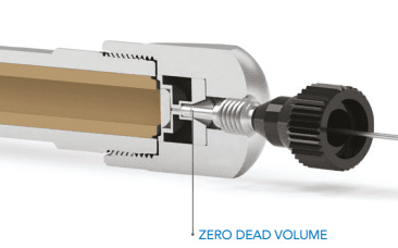 The integrated MarvelX sealing technology minimises internal dead volume, reducing the risk of carryover, Peak tailing and peak widening. The system is made of highly resistant, bio-inert PEEK and stainless steel and enables over 100 reliable connection cycles. The fl exible 1/32“ OD capillary facilitates routing in the system. In addition, the patented technology automatically adapts to different port depths.